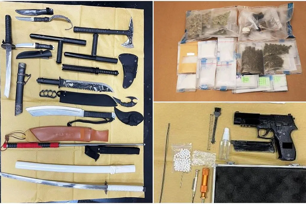 肃毒员在住宅底层和单位内搜出约300克的冰毒、238克的海洛英、五颗爱他死药丸、18颗相信是毒品的药丸,以及各种吸毒用具。