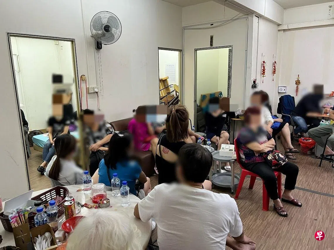 在其中一起行动中,当局在芽笼路一带的单位内突击非法赌博活动,共起获8万3000元的现金和各种赌博用具。21名年龄介于35岁至77岁的男女,因违反赌博管制法令接受调查。其中一名36岁男子也因在没有持工作准证的情况下工作,触犯外来人力法令被调查。