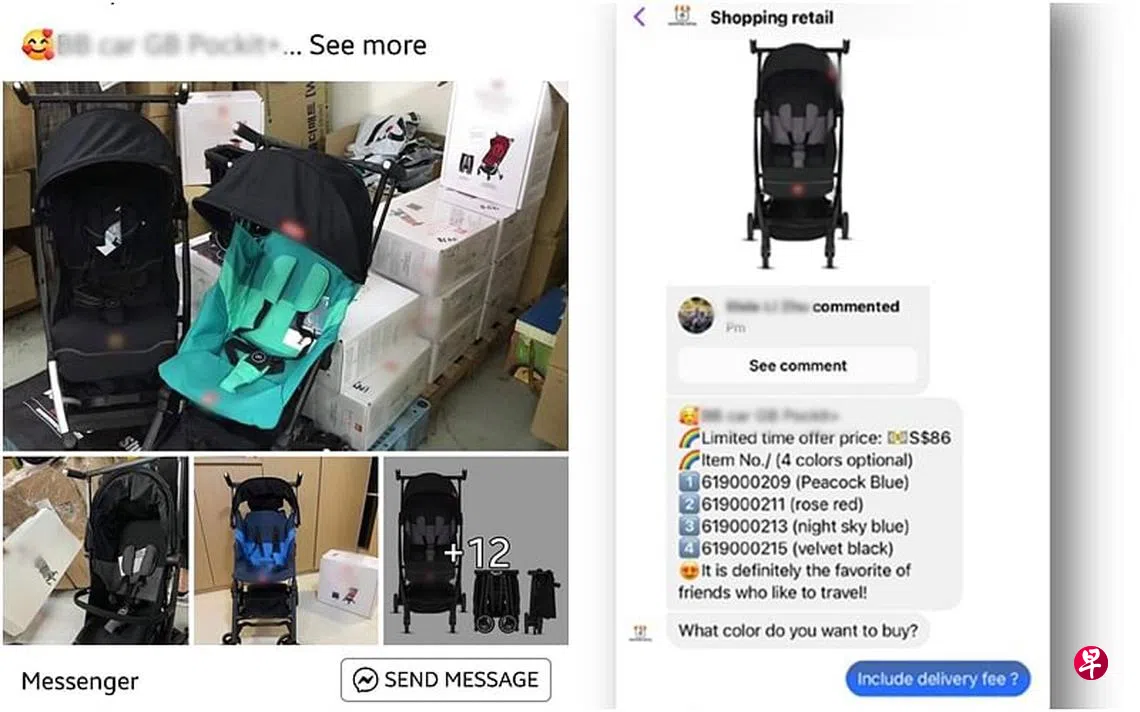 根据警方提供的照片,骗子谎称有限时“好康”,称一辆婴儿车只需86元,并有四种颜色可供买家选购。