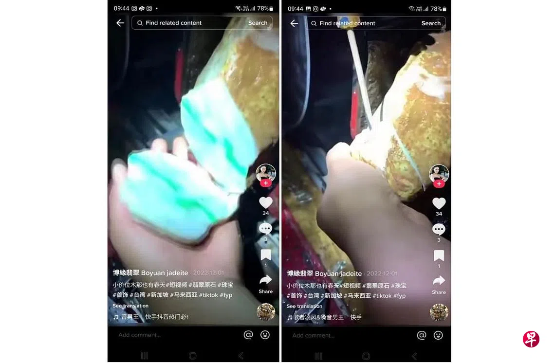 另外,骗子也会假装在TikTok直播平台里要求受害者“投资”翡翠原石,声称切割原石后,视玉石的品质决定投资的回报。