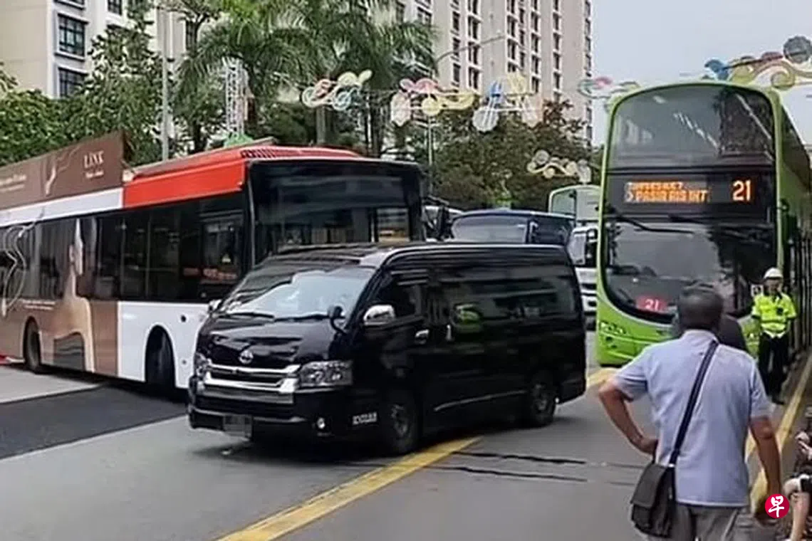 (早报讯)新捷运巴士与货车相撞阻碍数条道路,导致交通拥堵近一小时,13个沿途巴士服务延误,一名货车女乘客送院治疗。