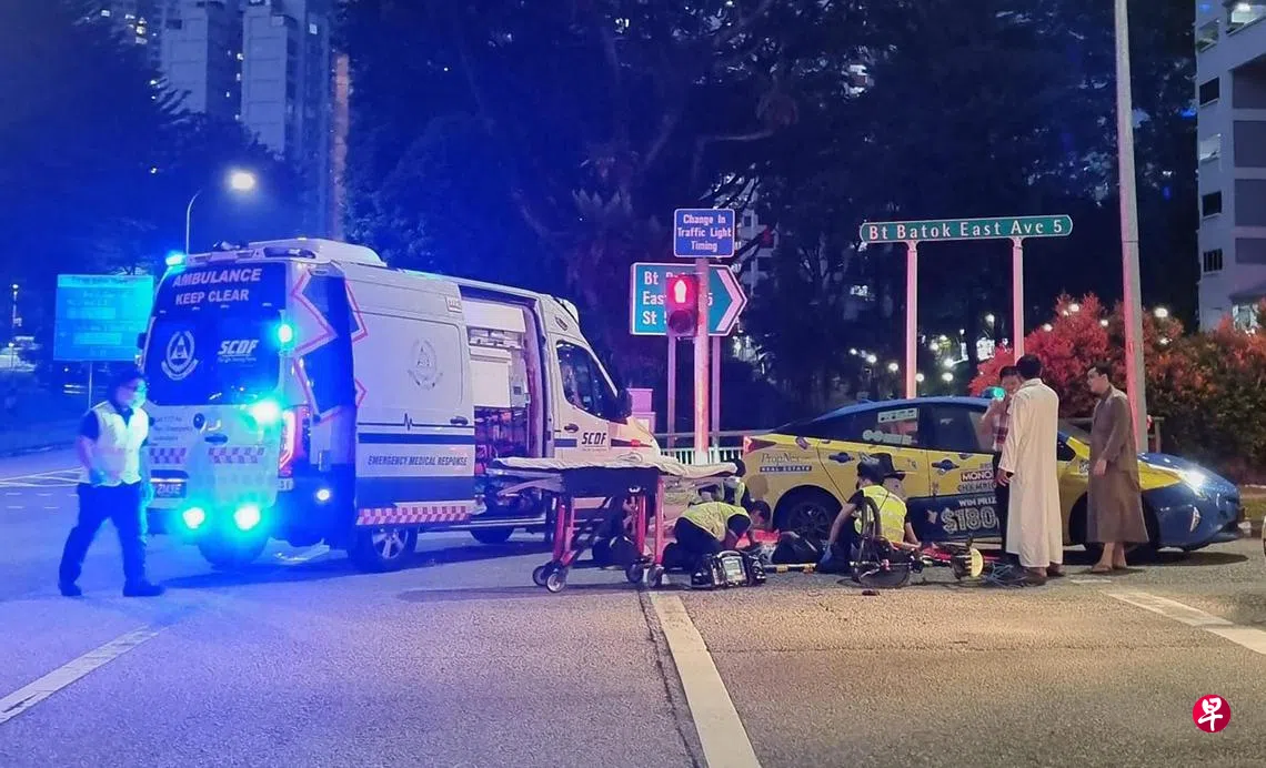 这起车祸发生在星期二(3月28日)早上6时55分,一辆德士在武吉巴督东4道和5道的交界处左拐时,撞倒一名脚踏车骑士。