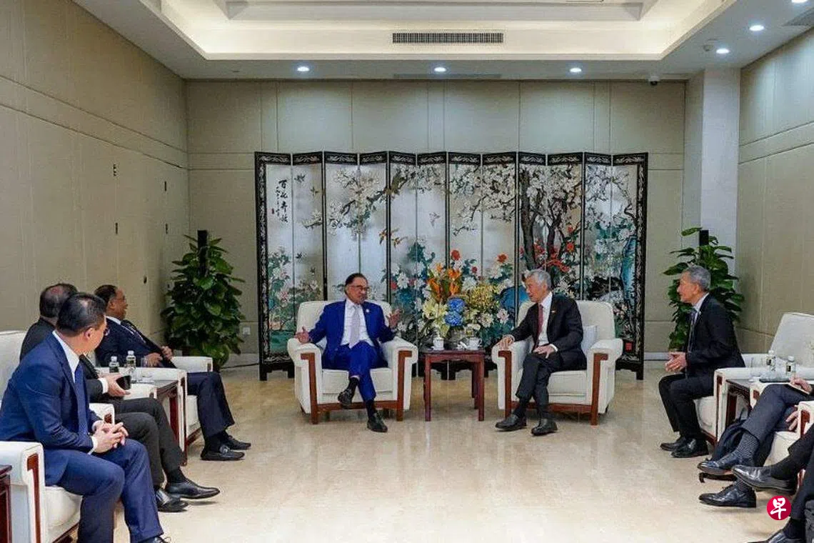 李显龙总理星期四(3月30日)上午出席博鳌亚洲论坛前,与马来西亚首相安华会晤。