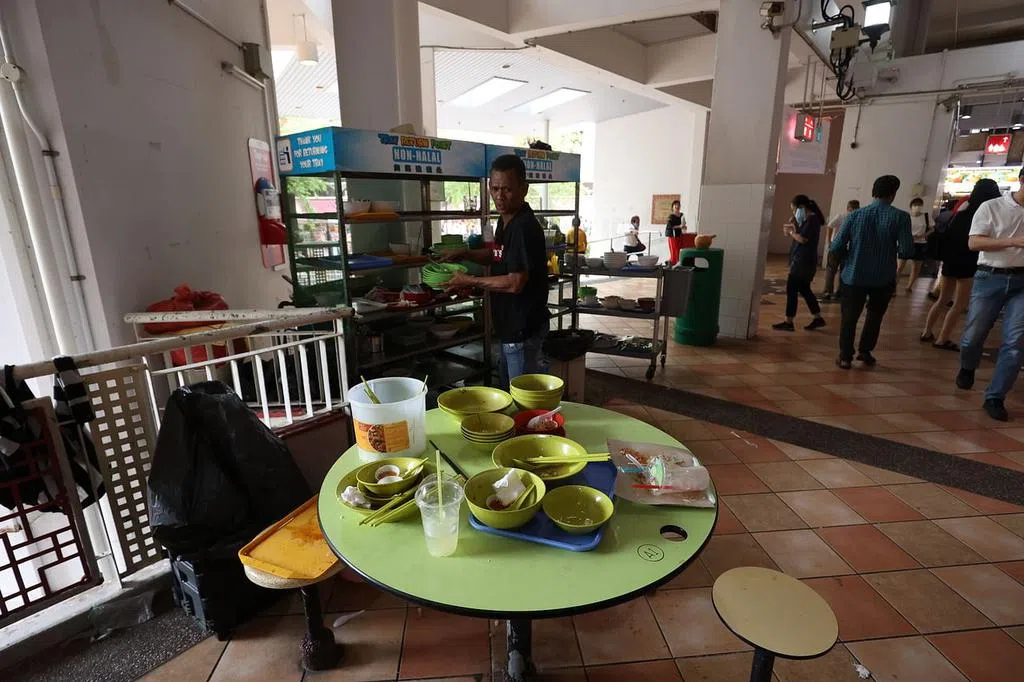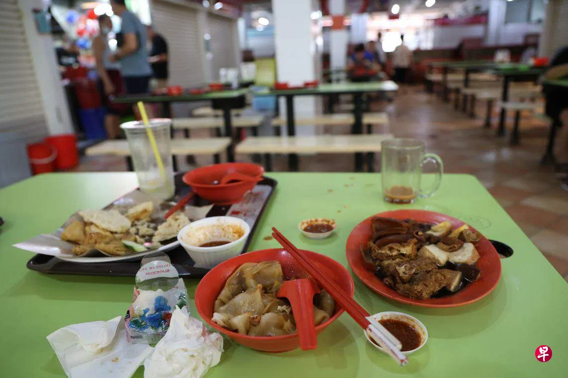 清洁人手不足 熟食中心周末碗碟堆积