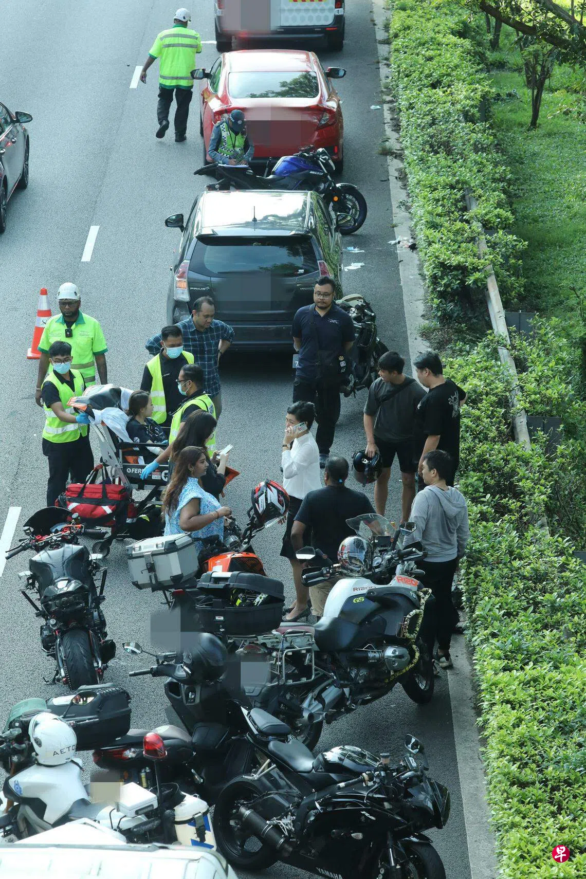 据了解,车祸发生后,现场一度排起近百米长车龙,整个交通拥堵情况持续近一小时才缓解。警方和民防人员也到场,当局出动至少两辆救护车。