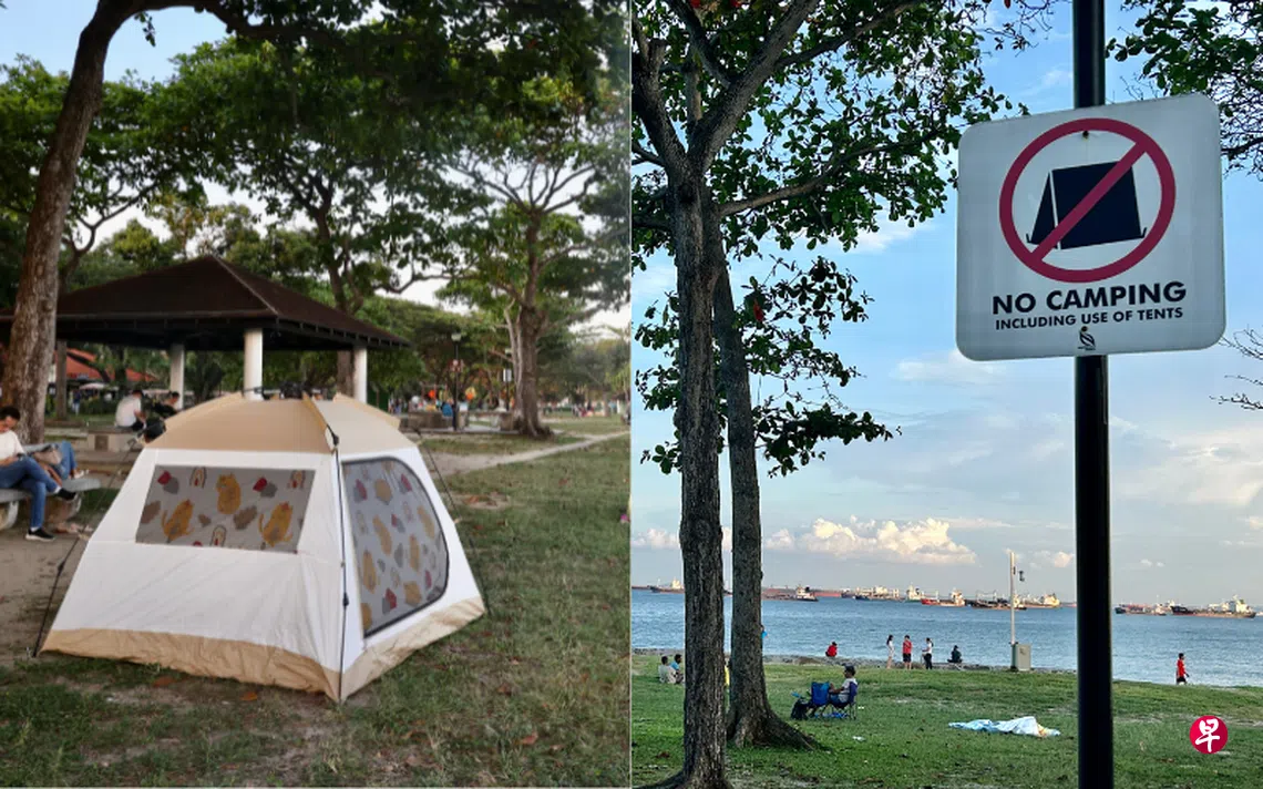网民向STOMP申诉,发现有民众在东海岸公园禁止露营的告示前搭帐篷。