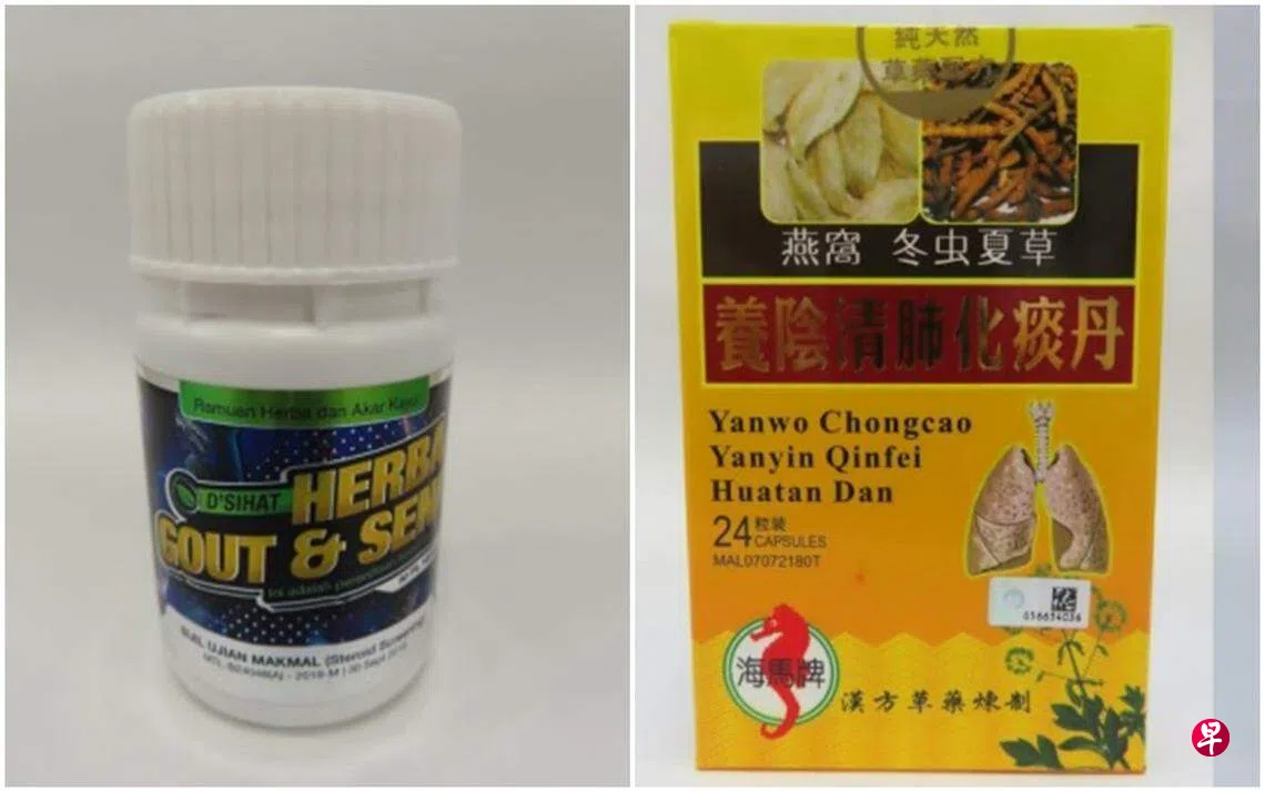 卫生科学局星期五(4月14日)公布了两种含有强效类固醇成分的产品,会对消费者身体造成严重的不良影响,这两种产品分别是“D’sihat herba gout & sendi”和“海马牌燕窝冬虫夏草养阴清肺化痰丹”。