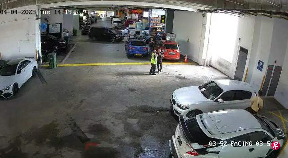 大厦的保安员谢福进(60岁)接受《联合早报》的访问时说,当时有两辆车因挡住三楼的火患逃生通道,他在大厦经理的指示下,对违规的车辆锁轮。一名男子上前要求他们解锁,但被经理拒绝。