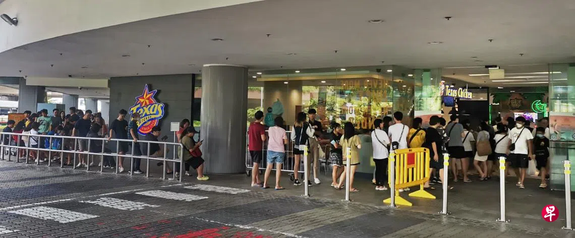 据了解,顾客都是冲着炸鸡快餐店Texas Chicken的促销活动而来。