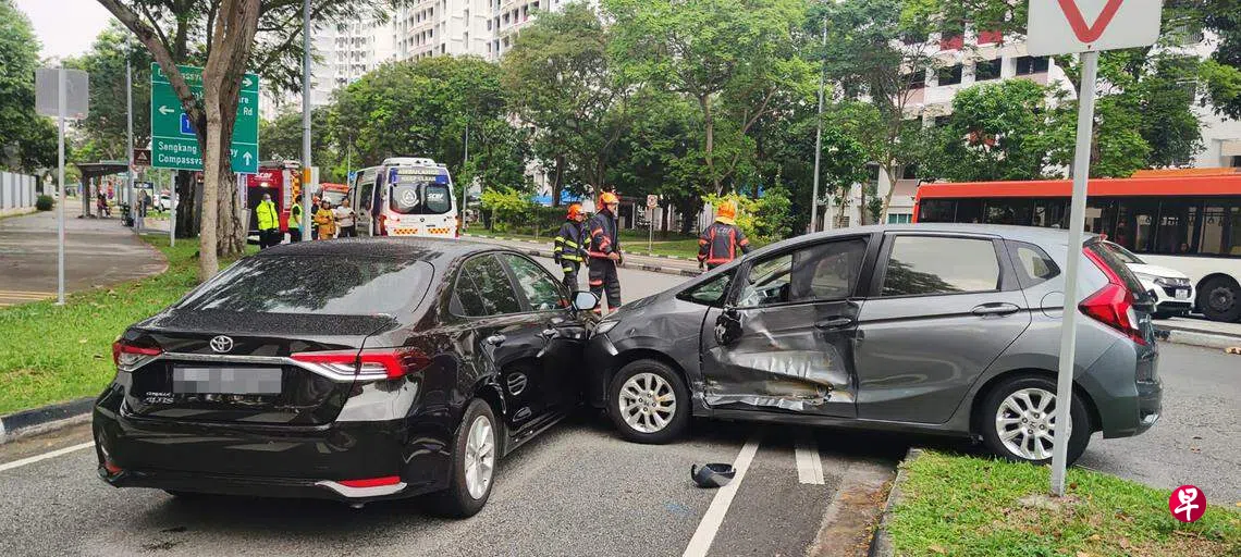新加坡民防部队受询时说,有一人在车祸中受了轻伤,但伤者拒绝送院。