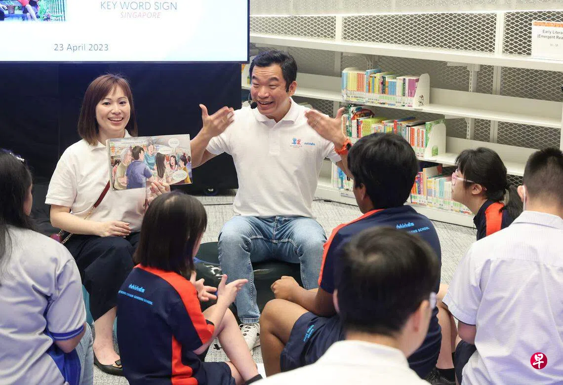 蔡瑞隆于4月23日(星期天)早上主持新加坡智障人士福利促进会(MINDS)的新书推介会时说:“我想鼓励公众学习关键词手势语,在你们的支持下,智障人士与他人沟通时会更有自信,这符合加强残障服务总蓝图的国家愿景。”
