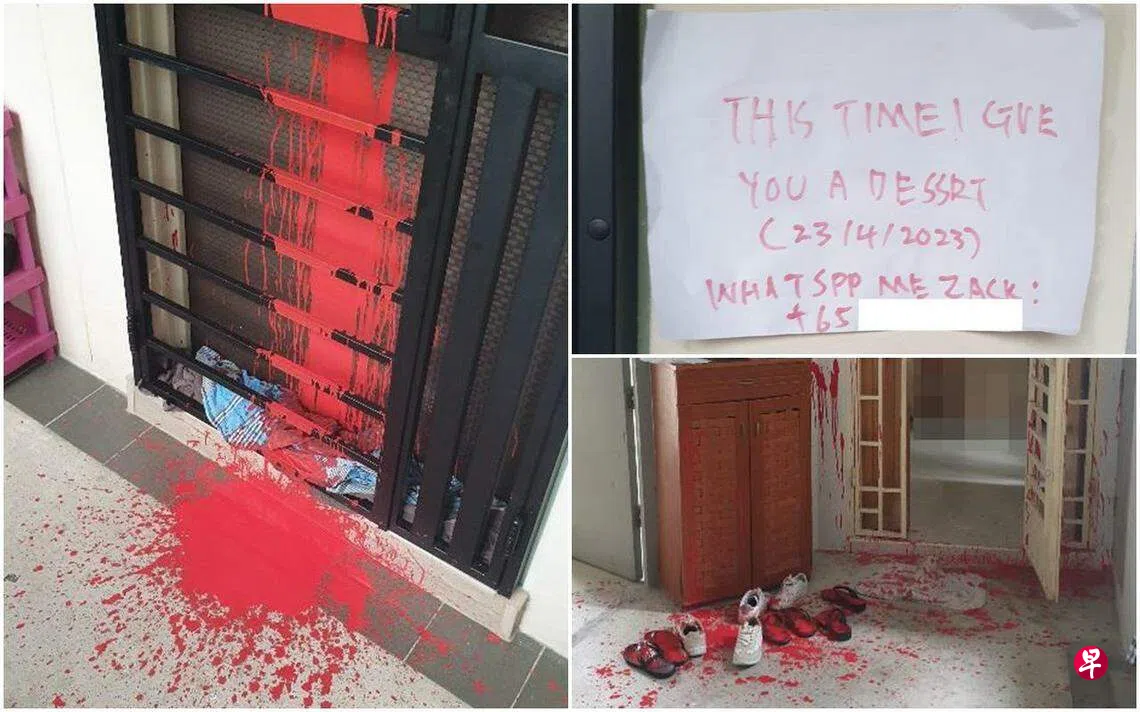 “这次我送你甜点”!涉嫌到至少两间组屋单位泼漆和留字条,一名26岁男子被捕。