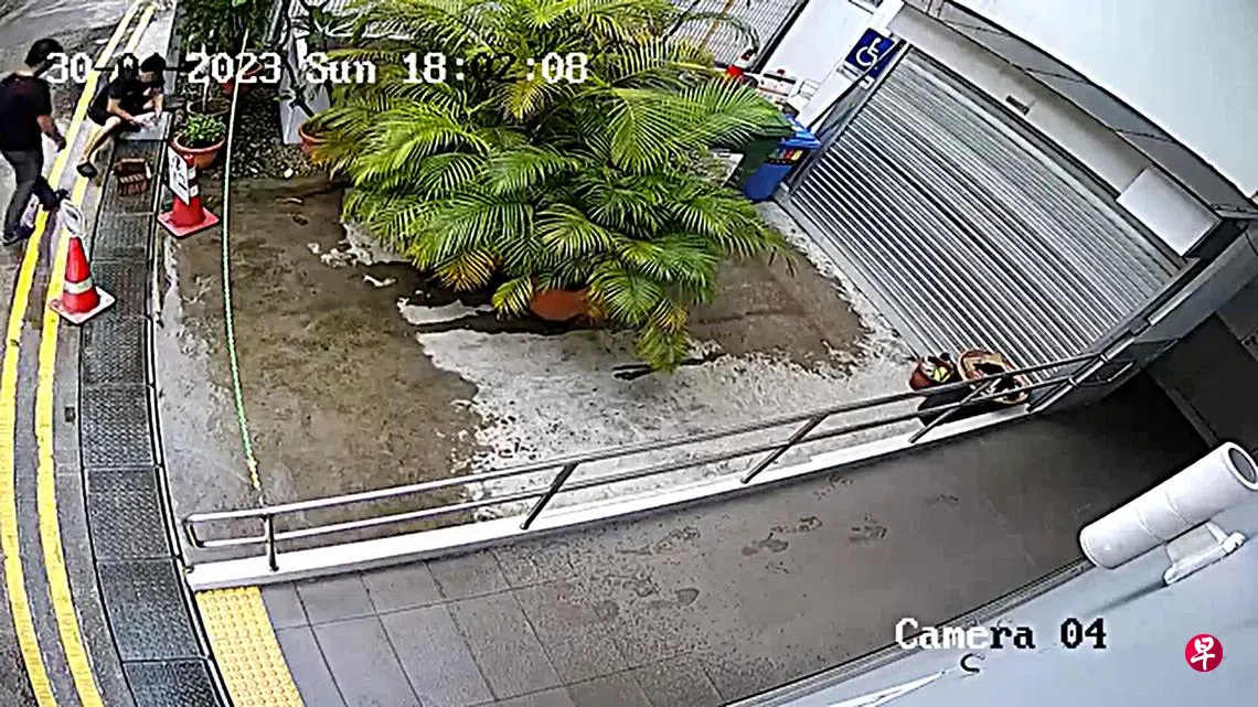 网上日前流传一段电眼画面,显示两名男子在星期天(4月30日)傍晚6时许,到一公寓底楼,不断挑选在盆栽底下的砖,随后擅自取走数块红砖。