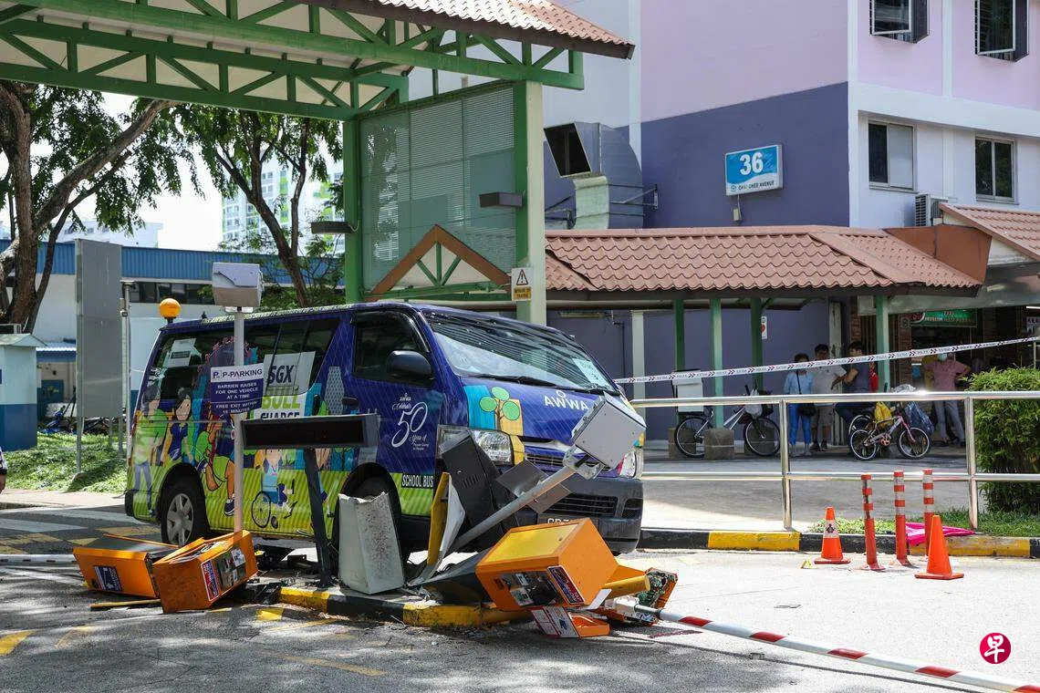 菜市组屋区发生一起车祸,一辆校车撞上一名过马路的年长女子,导致女子头部出血送院救治。