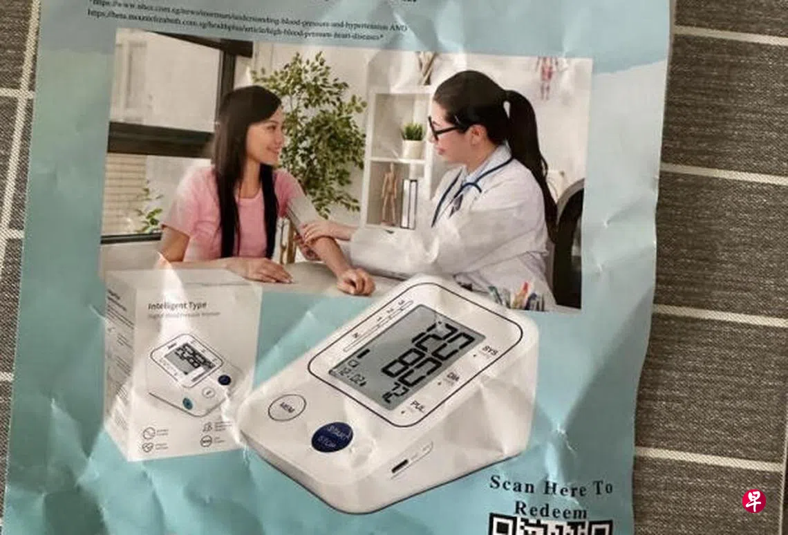 《新明日报》近日收到多名读者通知,称收到一则被多次转发的短信,写着“这是一个骗局,请不要扫描QR码”,附带的图片是一张被揉皱的传单,上面写着每户住家都能获得一个免费的血压检测仪。