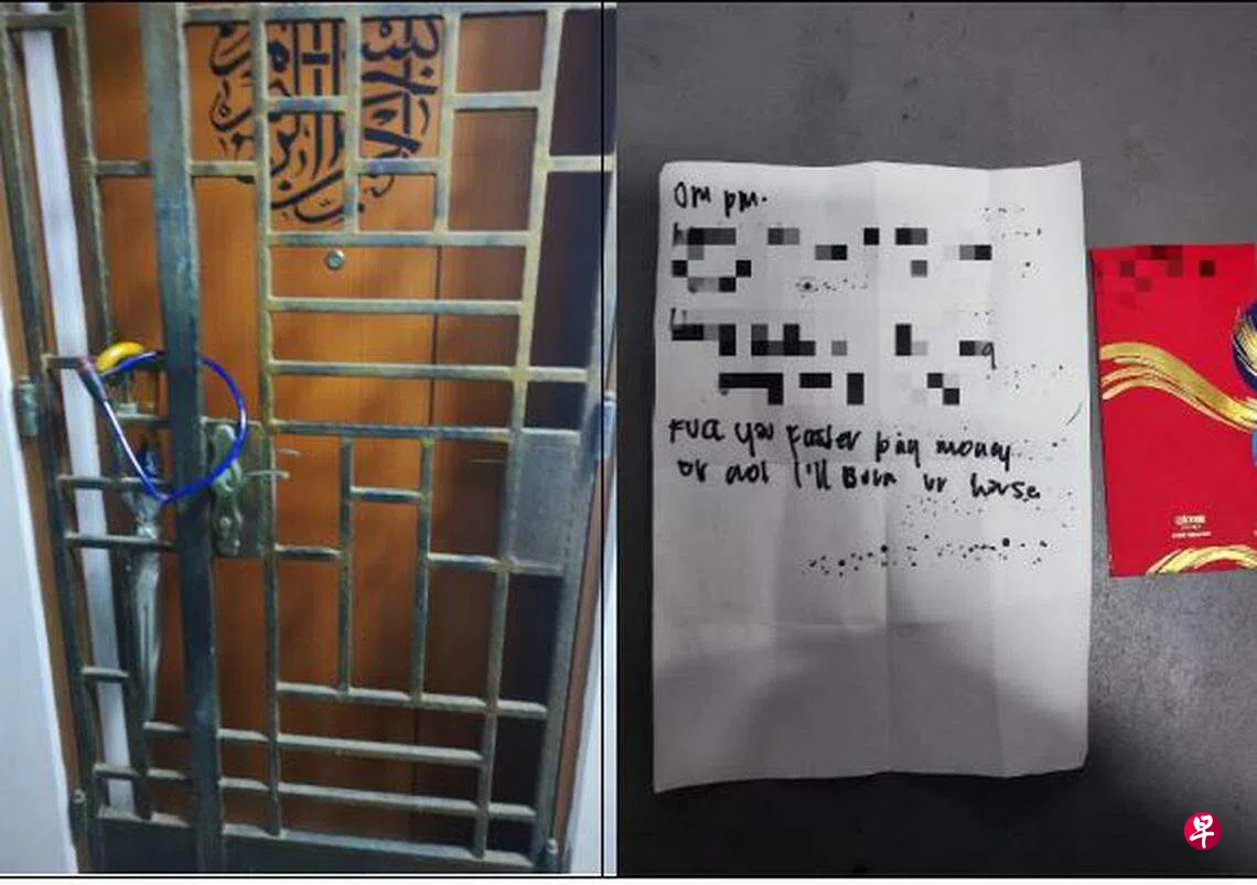 第二起案件则发生在5月8日,一名男子被指在淡滨尼9道一住宅单位外,用脚踏车锁链锁上受害者的大门,并留下讨债字条。勿洛警署的查案人员随后展开调查,调阅电眼画面后锁定男子身份,并在隔天(9日)将其逮捕。