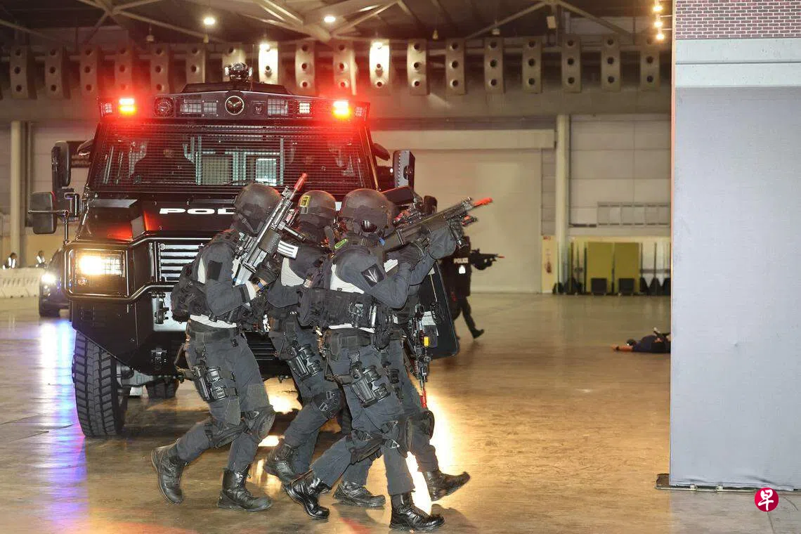 上述情景是警方在星期五(5月12日)的工作计划研讨会上搬演的反恐演习片段,特别行动指挥中心的战术反击车(Tactical Strike Vehicle)也在演习中初次亮相。