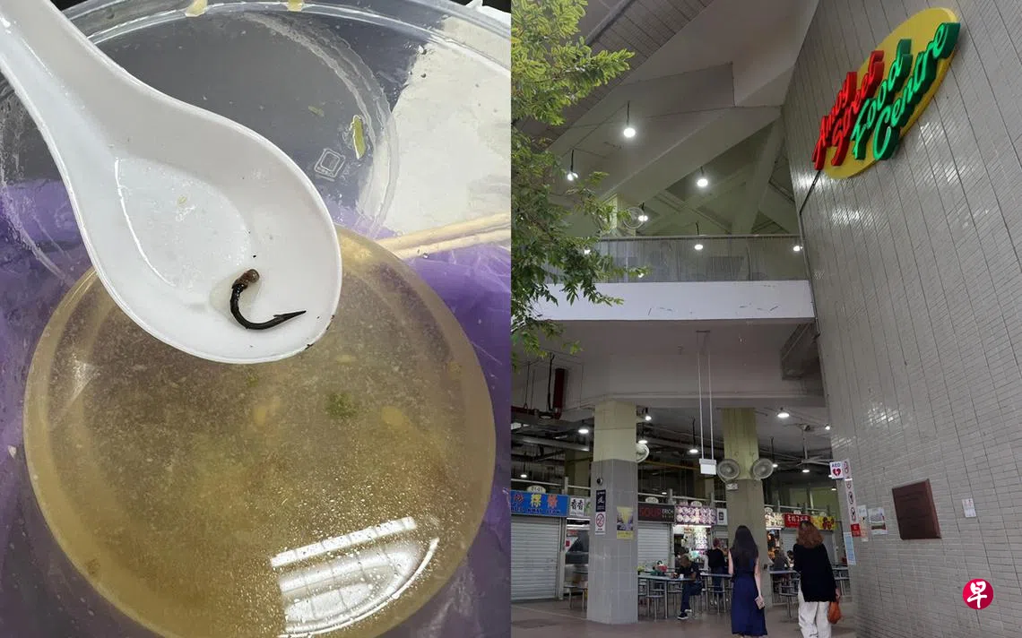 张姓女食客(36岁,会计师)向《新明日报》申诉,她到厦门街熟食中心一个鱼汤摊吃午餐时,打包了一份鱼片汤回公司享用,岂料发现不明物体。