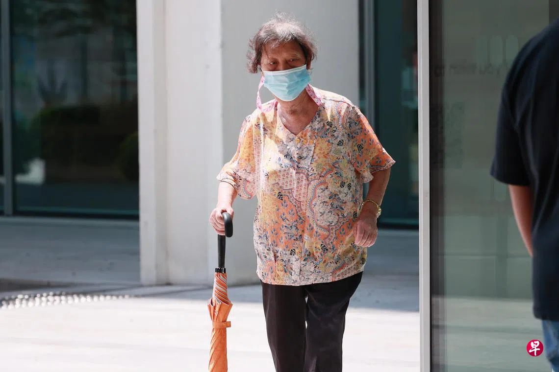 星期一早上11时50分左右,73岁的阿娥在儿子(30来岁)陪同下出现在国家法院。阿娥以雨伞为拐杖,步伐蹒跚,一拐一拐地走向法院。