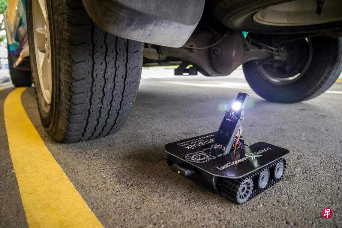 这款便携式遥控设备由陆交局和淡马锡理工学院合作研发及部署,配有可移动的照相机和照明灯,可从不同的角度拍摄车底。小巧的设备也可在各类停车场和路面使用,方便当局在不同地点和场景进行执法检查。
