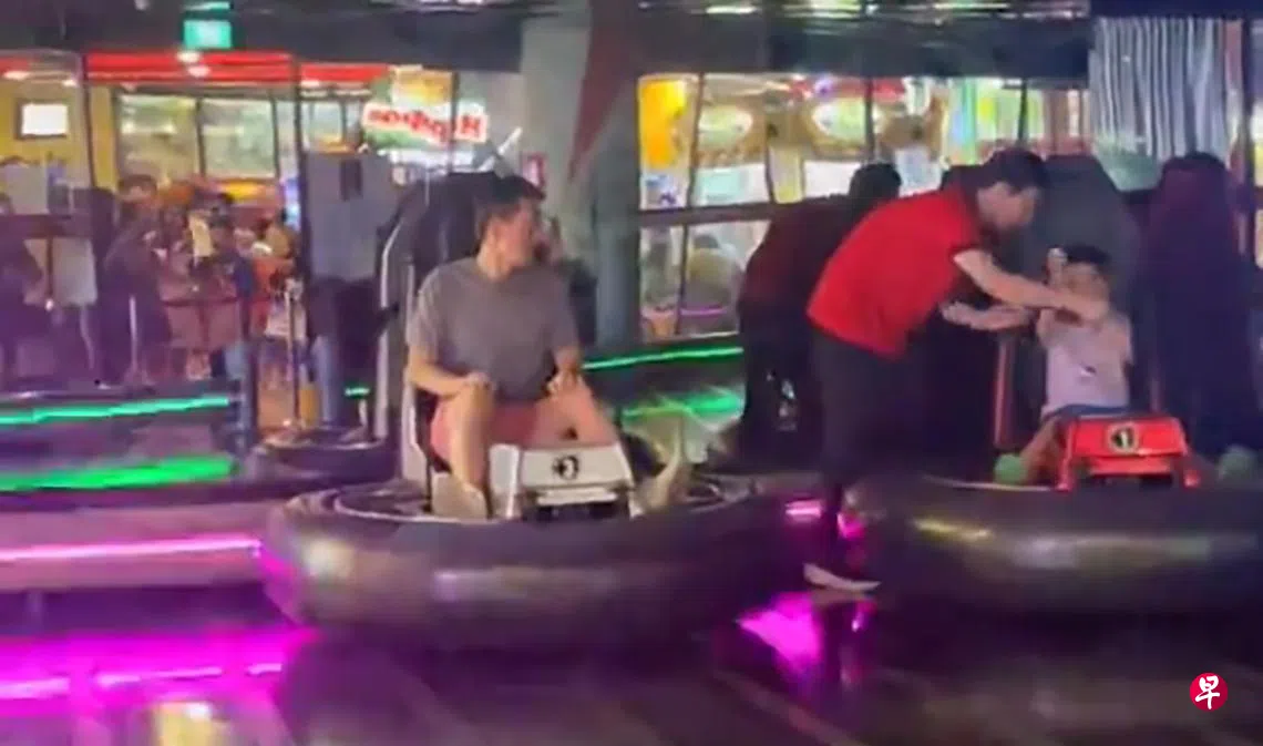 民众在怡丰城巧遇TikTok总裁,周受资趁假日带孩子到商场玩碰碰车,享受美好的亲子时光。