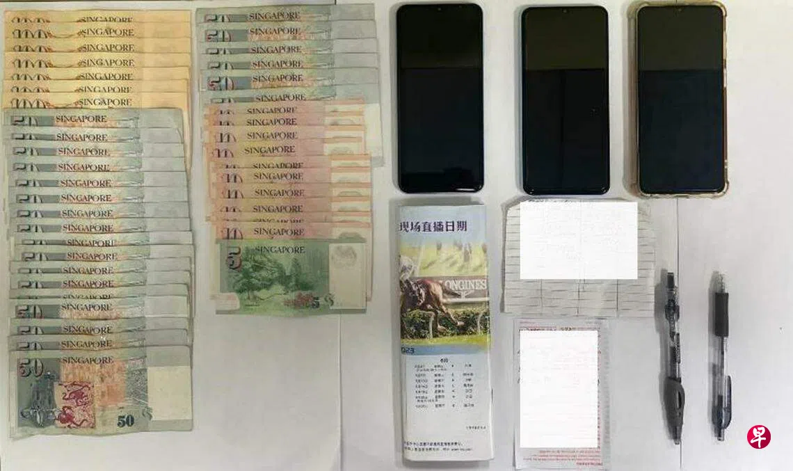 新加坡警察部队星期三(5月24日)发文告时说,刑事侦查局联合七大警署,于2023年5月10日至20日,分别到武吉巴督、庙弯、红山景、牛车水、大巴窑、裕廊东、裕廊西、淡滨尼、黄埔、义顺、马西岭、文庆路上段、马林百列、榜鹅和盛港等全岛多处,针对赌外围马活动展开突击行动。