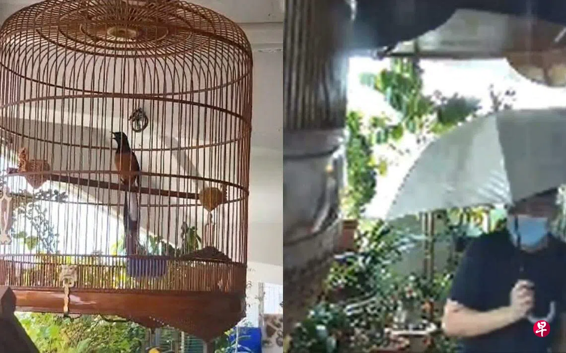 鸟儿的主人是住在义顺环路第617座组屋的方姓退休人士(62岁)。他告诉《联合早报》,星期一(5月29日)中午为三只白腰鹊鸲洗澡后,就把它们挂在门口,岂料出一趟门回家时,其中一只鸟儿已经连同笼子被偷走。