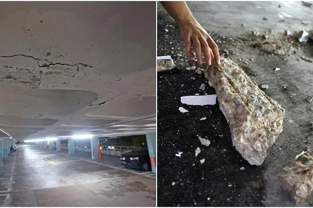 住在这一带的居民周先生(68岁)发来图片通报,说上周末经过盛港安谷巷(Anchorvale)路第309C座和310A座组屋之间的走廊时,发现顶端外侧的石灰块坠落在地上,所幸无人受伤。