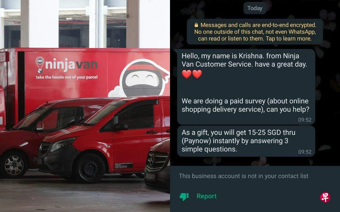 冒充快递公司能者快递(Ninja Van)人员发出有偿问卷调查,不法之徒试图骗取不知情公众的个人信息。