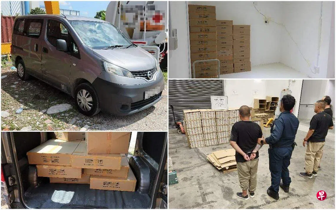 新加坡关税局星期三(6月21日)发文告说,当局6月16日在惹兰文礼的停车场展开突击行动,发现一名47岁的新加坡籍男子正打开一辆货车的侧门,而一名27岁的中国籍男子站在一旁等待。
