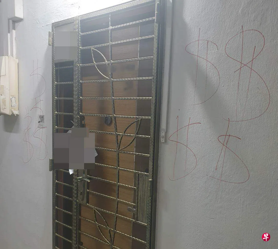 新加坡警察部队星期一(6月26日)发文告说,警方上星期天(25日)接到报案指芽笼东1道的一间住宅单位遭大耳窿骚扰。该单位不仅被放置讨债字条,门上的锁头被封住,单位旁边的白墙上也被涂鸦。