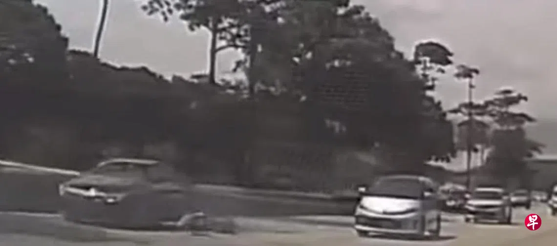 根据脸书专页SG Road Vigilante贴出的视频,快速公路右侧是一片树林,一只野猪突然从树林跑出来,跨过四条车道。