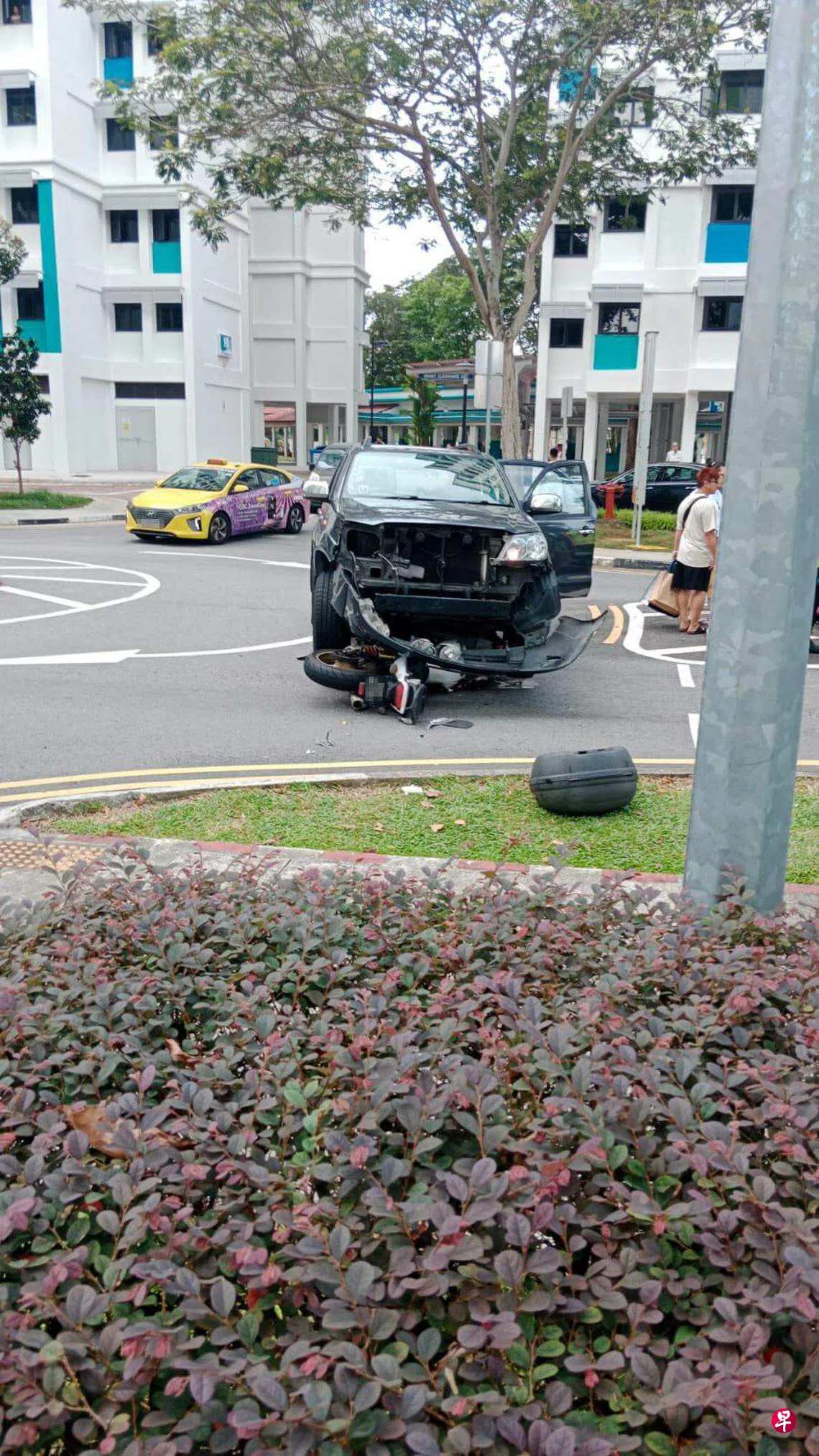 这起车祸发生在星期四(6月29日)下午约3时20分,地点是在菜市路,靠近第808B座组屋入口处前的交通圈。