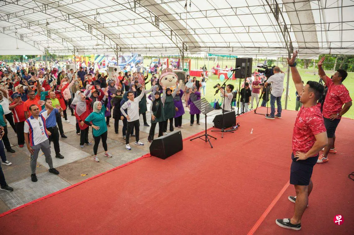 分别担任裕廊和蔡厝港M立方首席顾问的卫生部兼律政部高级政务次长拉哈尤玛赞和周凯年,连同包括国家发展部长李智陞在内的西海岸、蔡厝港、武吉巴督区基层组织顾问出席活动,与民众一起做健身操。