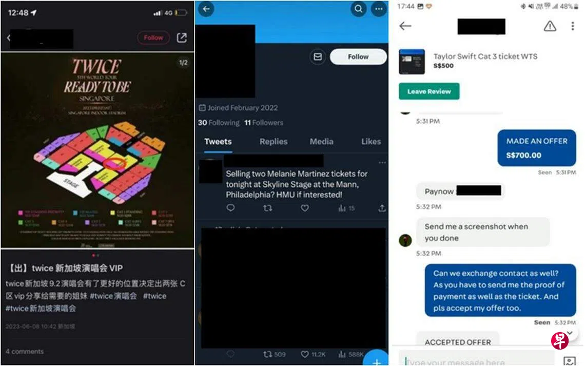 警方透露,在这类型诈骗中,受害者会在不同电商平台和社交媒体平台,例如小红书、脸书和推特等看到售卖演唱会门票的广告。受害者接着通过这些平台的聊天功能跟对方接洽,在一些案件中,受害者会被要求转到WhatsApp或Telegram等平台继续沟通。