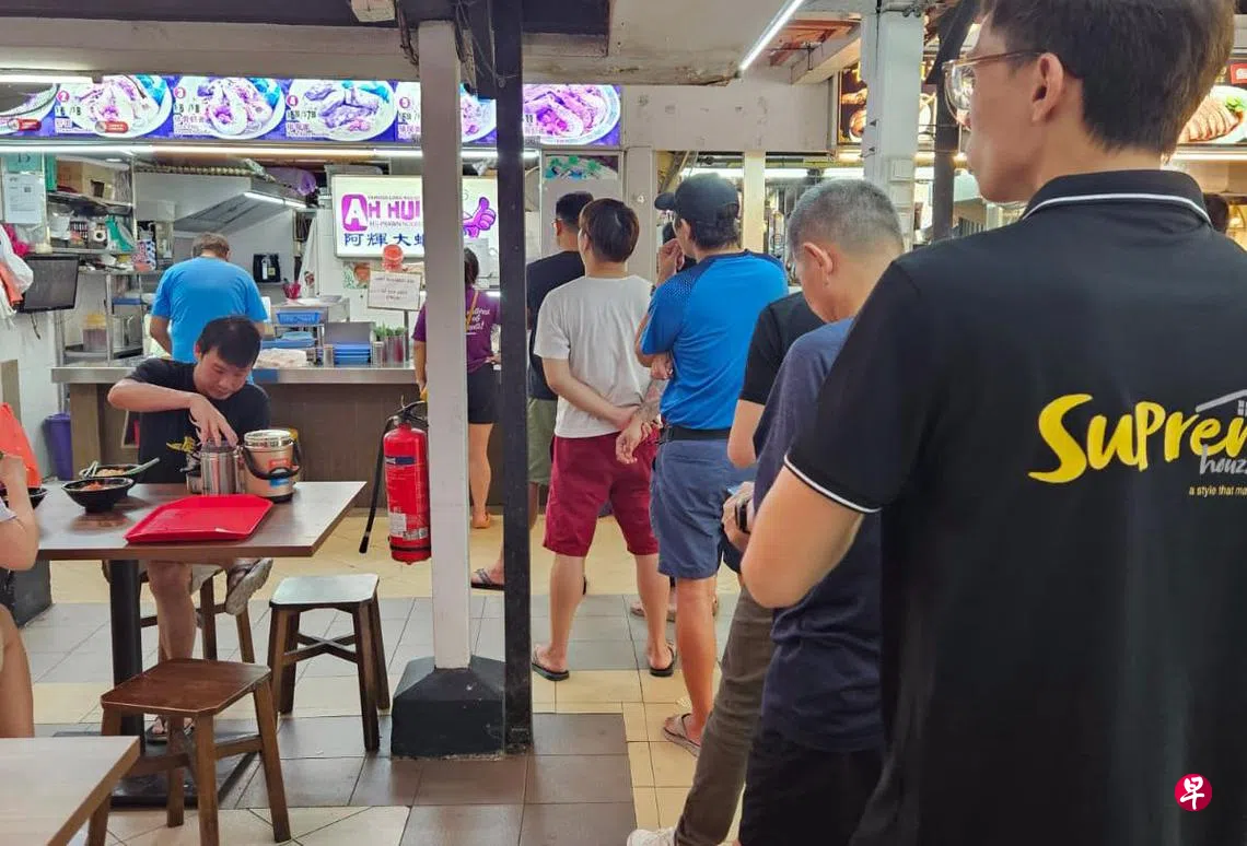 记者星期四走访马里士他食阁,虾面摊的顾客络绎不绝。当时是午餐时间,摊位有10多人在排队。