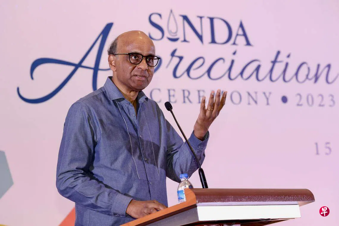 卸下公职准备竞选总统的尚达曼以印度人发展协会(SINDA)主席身份出席协会答谢会时提到本地自助团体加强合作,转变角色的重要性。
