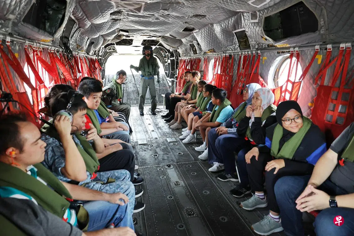 空军部队为庆祝成立55周年,也推出“空军关爱运动”(RSAF Cares),与公益金(Community Chest)联手于星期二(18日),为五家慈善机构的28名受益者和他们的看护人提供了试乘军机的机会。