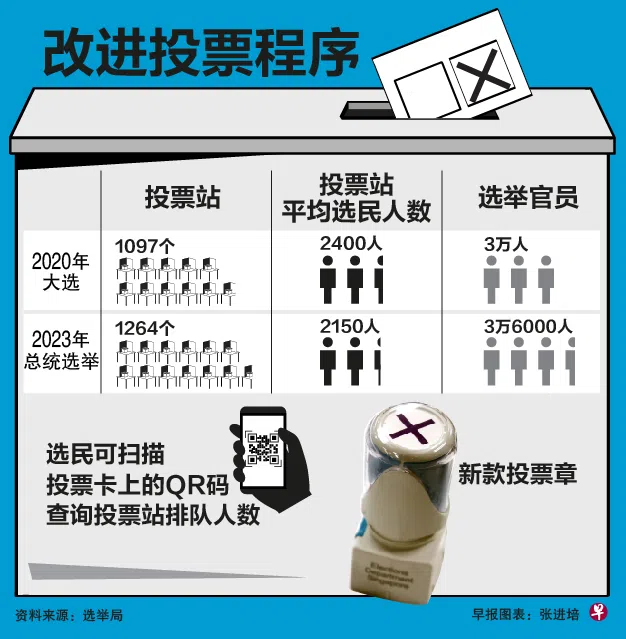 选举局星期一(7月24日)宣布,借鉴了2020年大选的经验,即将举行的总统选举将设立1264个投票站,这比2020年大选设立的1097个,多出大约15%。每个投票站的平均投票人数,也将从2020年大选的2400人,减少至2150人。选民也可以在前往投票站之前,上网查询排队人数。
