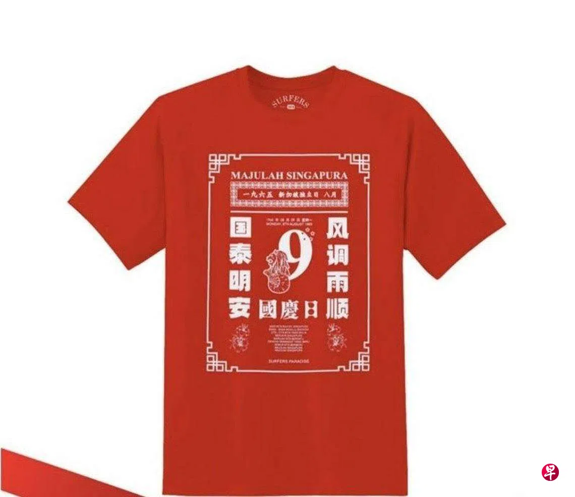 8月9日将至,商家争相售卖与国庆相关商品。服装品牌Surfers Paradise最近推出了充满国庆气息的T恤系列,不料其中产品设计却有误字。公司已召回所有受影响的产品,也将它们从网络购物平台撤除。
