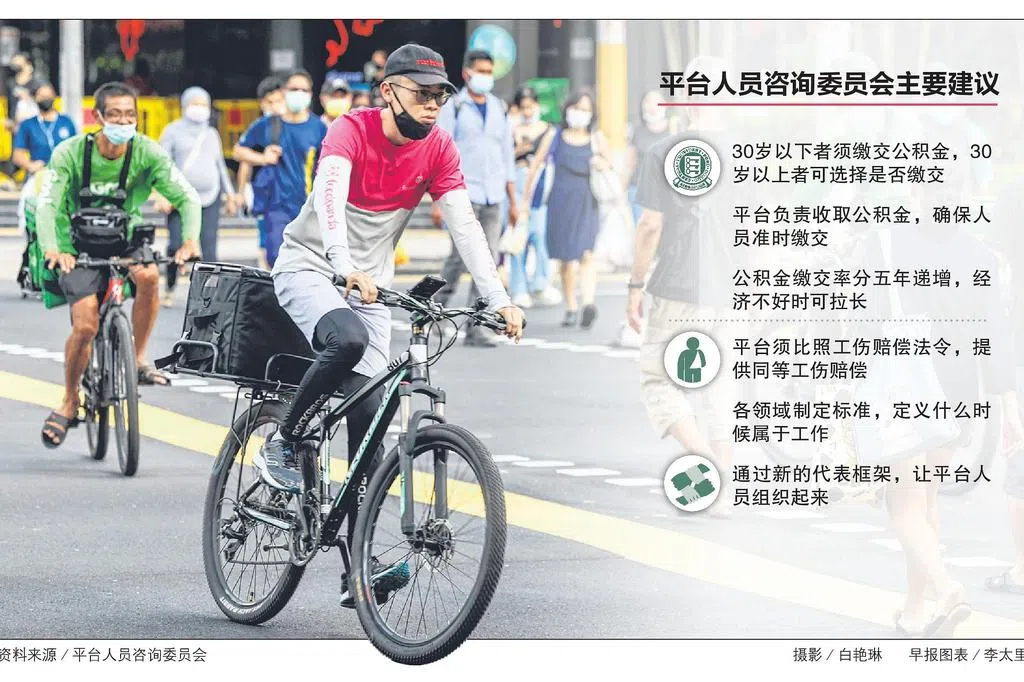 政府采纳的建议包括:平台公司须按工伤法令给予平台人员同等赔偿、30岁以下平台人员须开始缴交公积金,以及平台人员在新代表框架下,成立组织以代表他们争取权益。