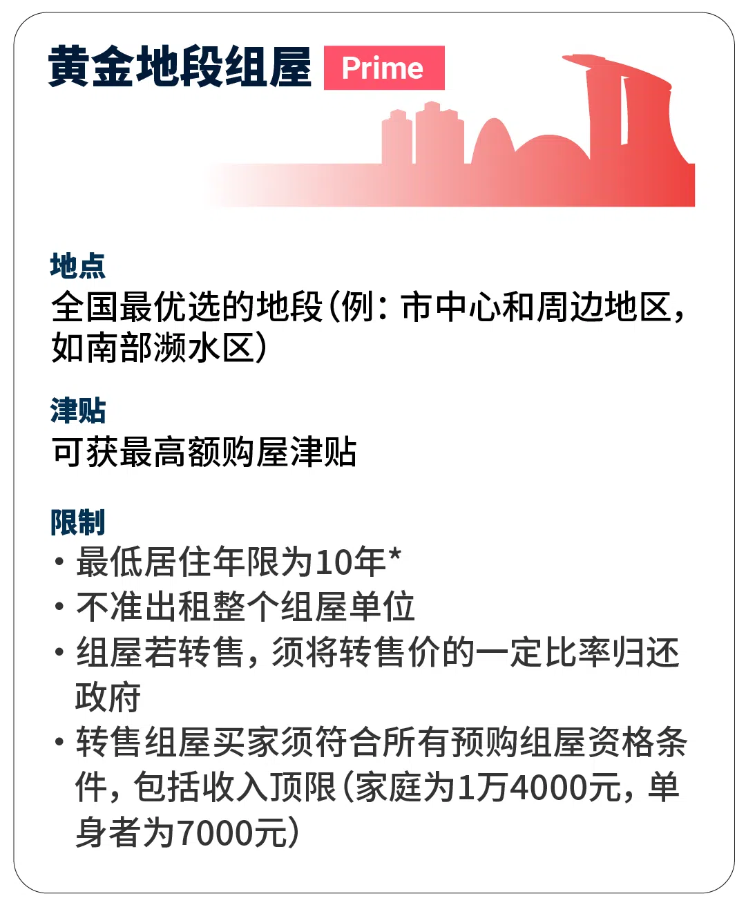 政府将推出的“优选地段组屋”(Plus projects),地点会较优越,政府因此会提供更多津贴,让更多家庭有能力购买,但这些项目也将附带更严格的售屋条件。
