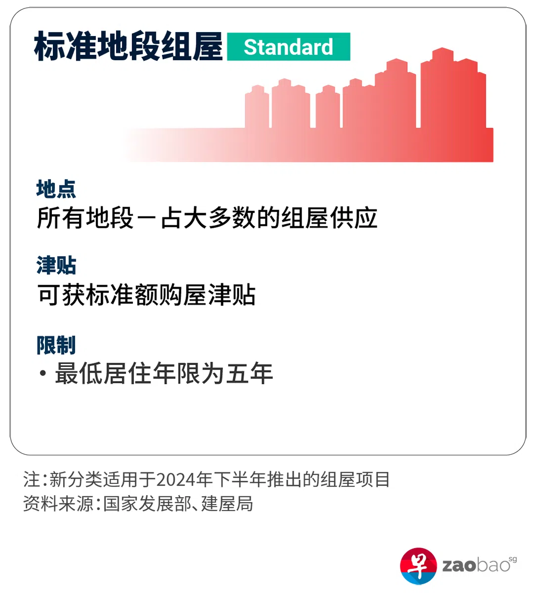 他说,公众熟悉现有预购组屋规则如五年的最低居住年限(MOP)和转售组屋的买家不设收入顶限等,这些都是购买预购组屋的“标准规则”,也将适用于“标准地段组屋”(Standard project)。未来,大多数组屋仍将属于标准地段项目。