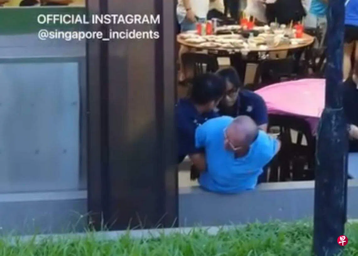 根据Singapore Incidents脸书上传一段时长31秒的视频,身穿蓝色上衣的男子在一间咖啡店被两名警员戴上手铐,过程中男子不断展开剧烈挣扎,另一名身穿深蓝色上衣的男路人见状上前协助警员将男子制伏。
