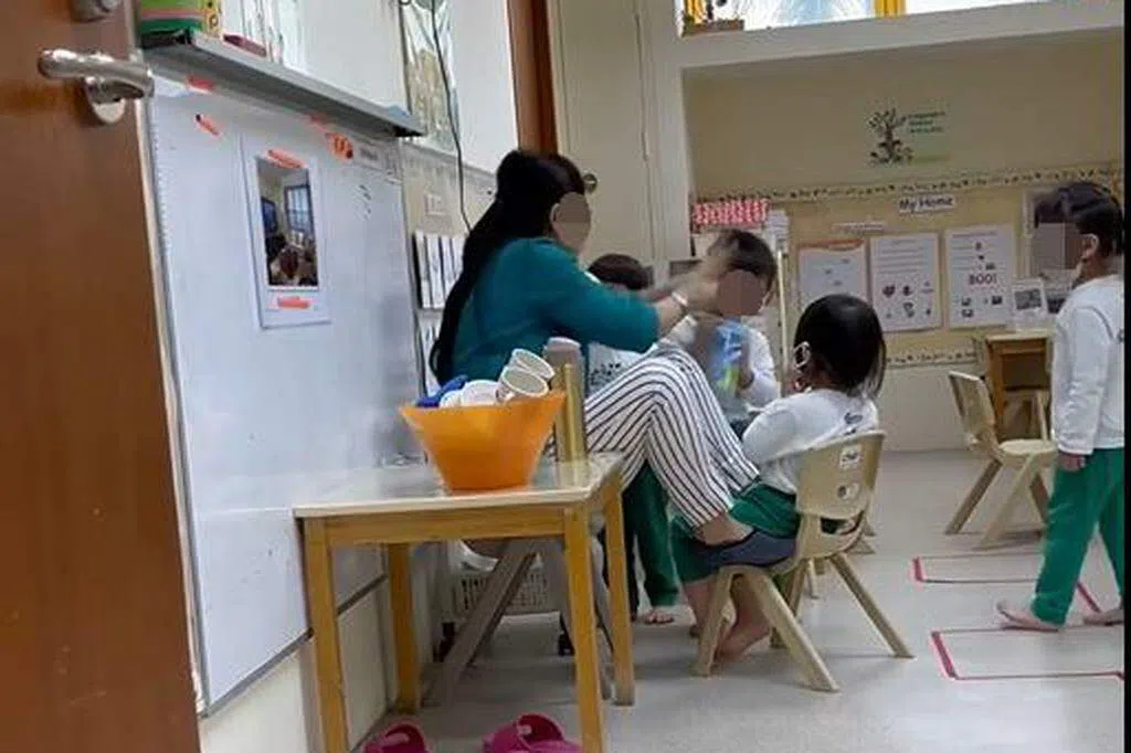 《联合早报》星期一(8月28日)接到读者发来的四段视频,视频里一名女教师涉嫌对数名学童暴力相向。事发地点是位于兀兰坊的馨乐园幼儿园(Kinderland),受影响是豆豆班(playgroup)年龄介于仅18个月至两岁的孩童。