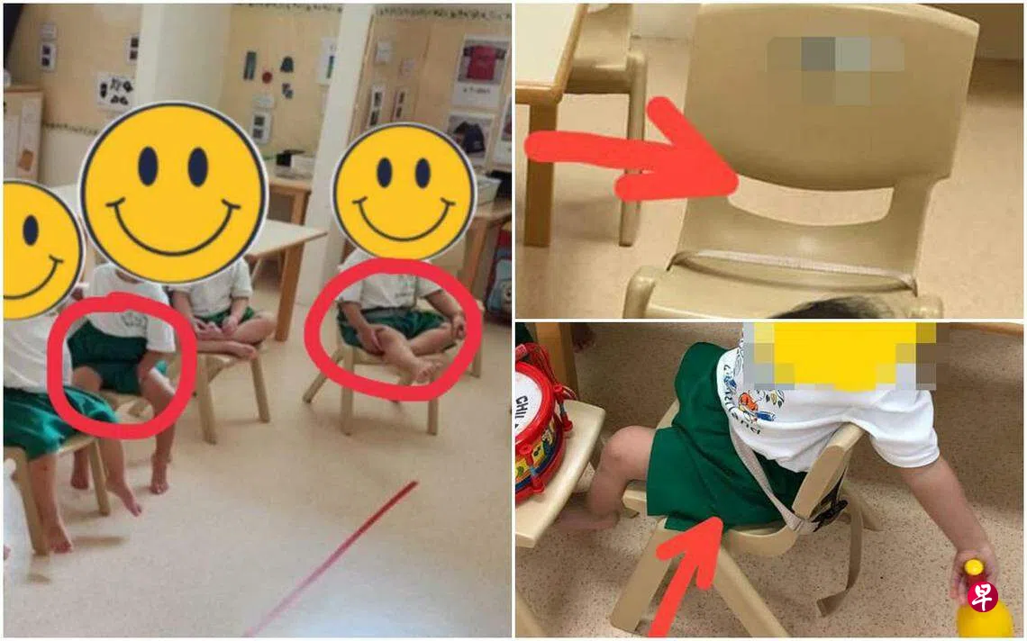 她说,院方今年4月底通过手机应用,向家长发来学童的活动合照。岂料她定睛一看,发现23个月大儿子的裤子出现一条“安全绳”,将他固定在椅子上,脚不着地。“我起初觉得很诧异,因为孩子年幼,可能在移动椅子时会向前倾倒而受伤。”