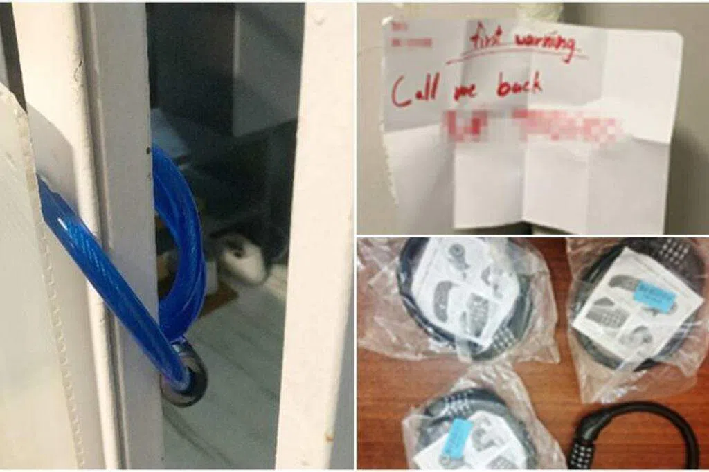新加坡警察部队星期四(8月31日)发文告说,警方星期三(30日)接获报案,指明地迷亚路的一个组屋单位发生大耳窿骚扰事件。警员到场时,一名男子正在单位外粉刷铁门,当时铁门已被脚踏车锁链锁上。