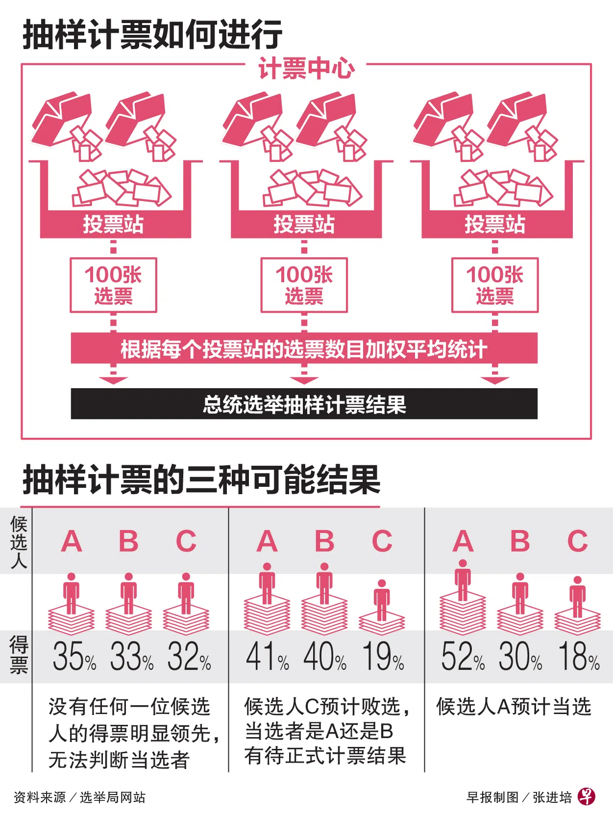 抽样计票结果预计会在投票结束后的一两个小时内出炉。正式结果则预计将在1日深夜或2日凌晨公布,揭晓到底是新加坡政府投资公司前首席投资官黄国松、前国务资政尚达曼,或职总英康前总裁陈钦亮脱颖而出,获选为我国第九位总统。