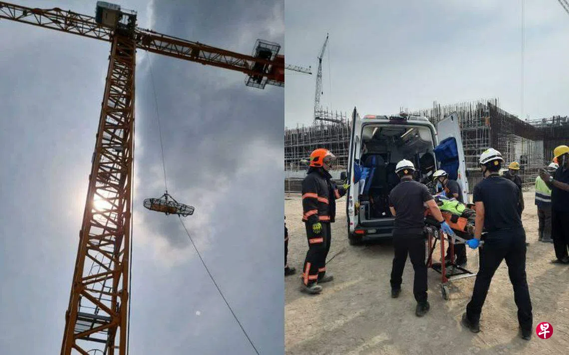 根据新加坡民防部队的脸书贴文,一名工人当时在40米高的重型塔式起重机上进行高空作业,但他突然感到身体不适,没法自行下降到地面。