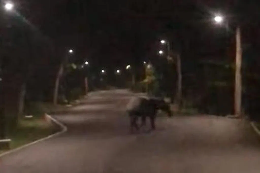 网民Pong Posadas星期一(9月11日)在SG PCN Cyclist的脸书群组分享一段视频,称自己在星期日(10日)清晨6时25分,在榜鹅公园连道前往罗弄哈鲁士桥方向骑车,突然听到身后蹄声哒哒,还以为是马,所以减速让它先行。